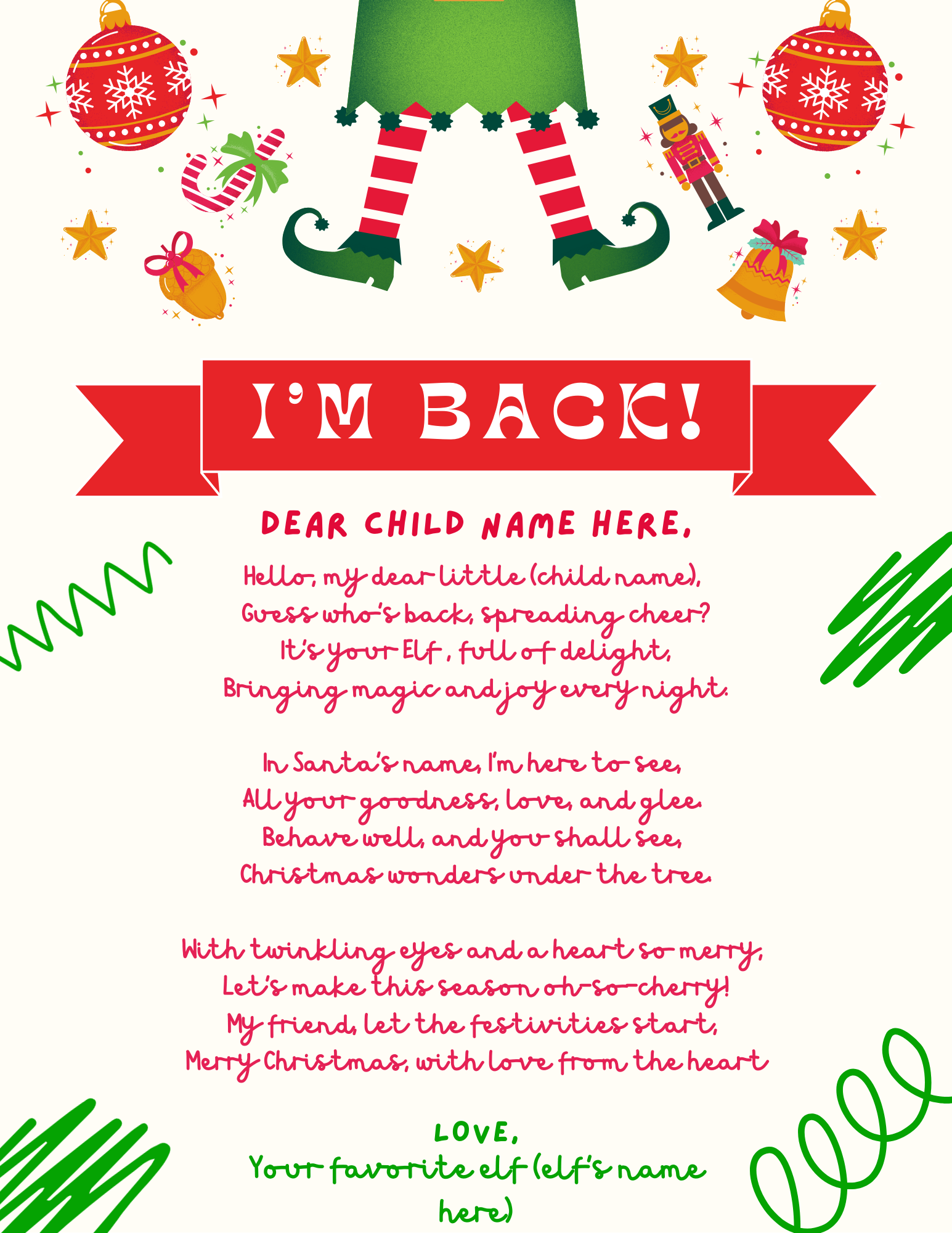 Welcome your child’s Elf on the Shelf in the most magical way possible! Our “Elf is Back!” letter is a fun and festive way to announce your elf’s return for the holiday season. Each letter is printed on premium bright white Astrobrights cardstock (65 lb / 176 gsm), giving it a smooth, crisp, and durable finish that feels as special as the tradition itself.