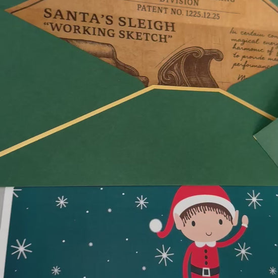 Make the holidays extra special with the Green Tier. Your personalized Modern Elf design is printed on premium gloss paper, wrapped with hand-tied natural rope, finished with a wax seal, and mailed in a green decorative envelope with gold trim. Perfect for gifting, displaying, or enhancing family holiday traditions.