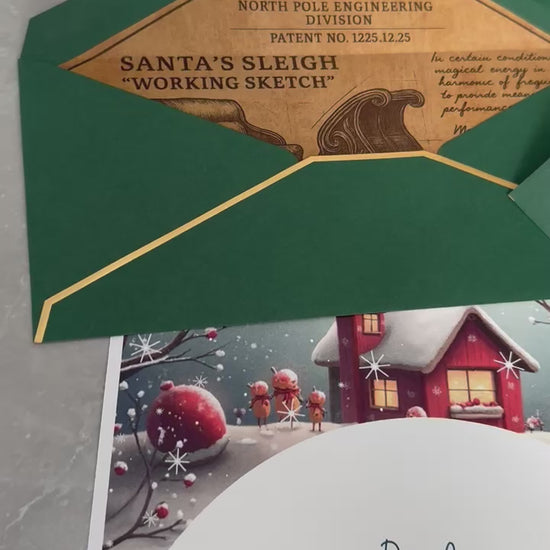 Make your holidays extra special with the Green Tier. Your personalized Your Elf’s Home design is printed on premium gloss paper, wrapped with hand-tied natural rope, finished with a festive wax seal, and mailed in a green decorative envelope with gold trim. Perfect for gifting, decorating, or creating lasting family memories.
